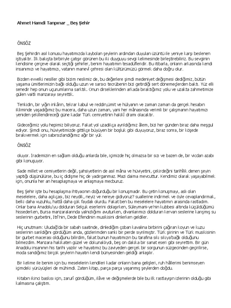 Ahmet Hamdi Tanpinar Bes Sehir Pdf