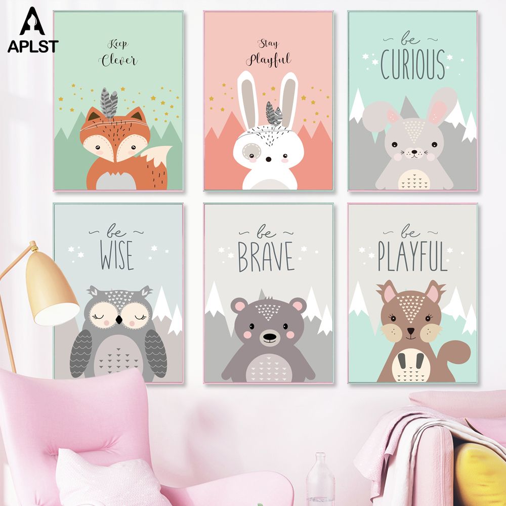 Satin Al Cesur Hayvanlar Sanat Anaokulu Tuval Poster Fox Baykus Geyik Ayi Tavsan Karikatur Cocuk Bebek Odasina Resim Ev Dekorasyonu Boyama Yazdir Be Tl27 21 Dhgate Comda